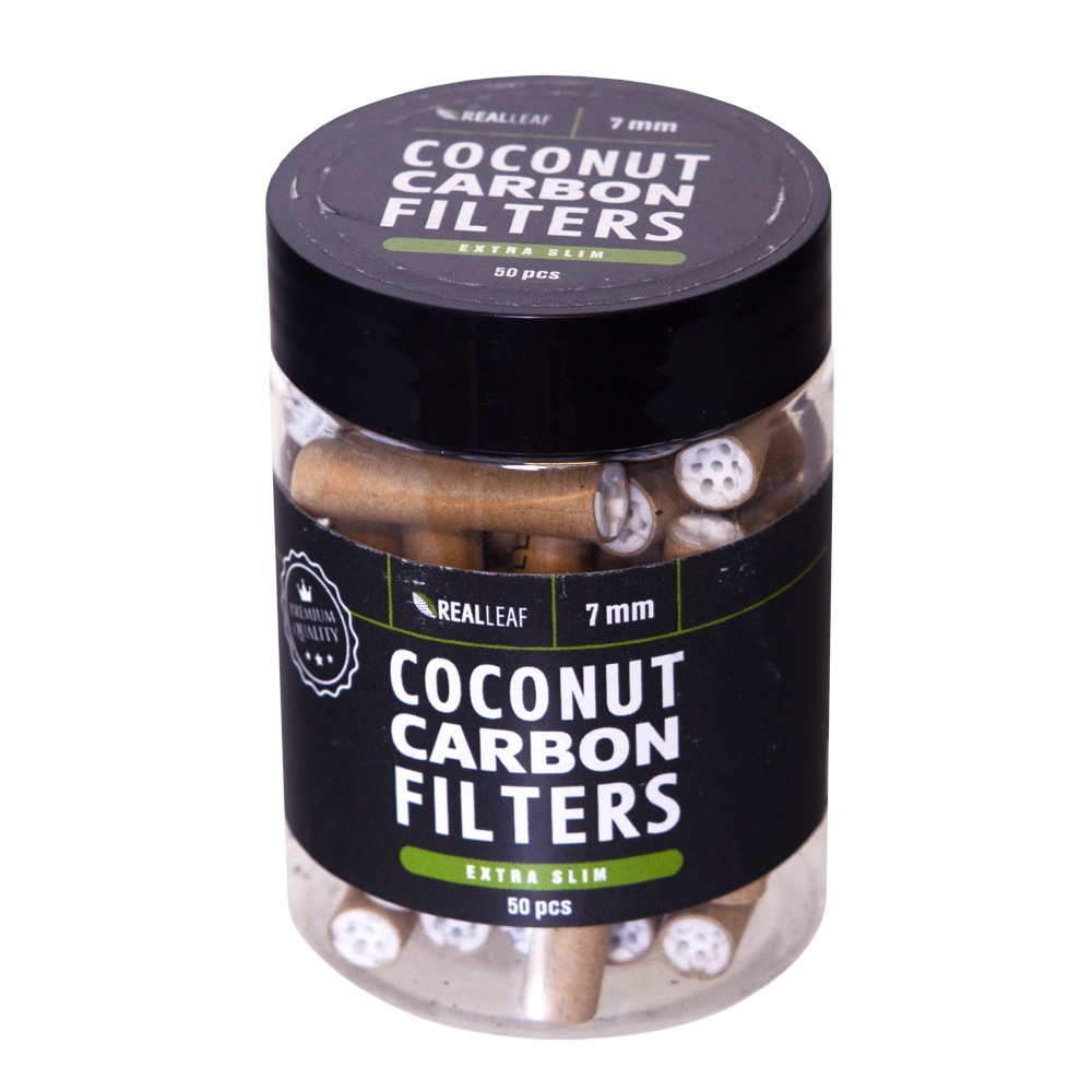 An activated carbon filter with coconut fibers from Real Leaf. Unlike traditional tips, the carbon inside works as an extra layer of protection between you and the smoke and removes some of the toxins that occur when smoking.